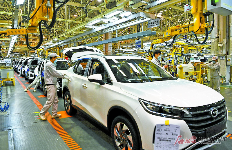 广汽乘用车有限公司新疆分公司员工在汽车生产线上工作(2021年1月8日摄)。天山网-新疆日报记者汤永摄